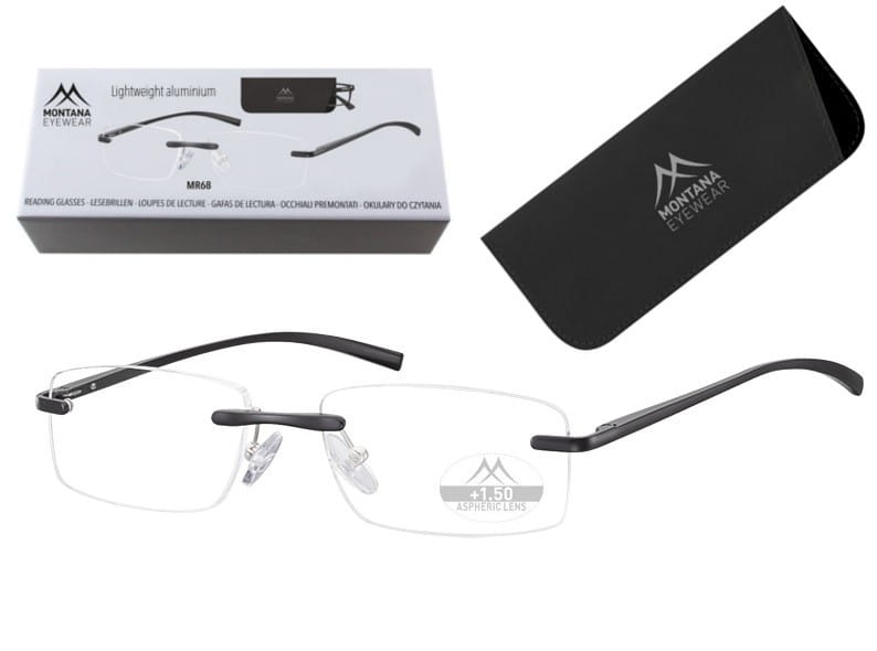 Bezramkowe patentki Asferyczne Okulary aluminiowe do Czytania Montana MR68 moc: +3.5