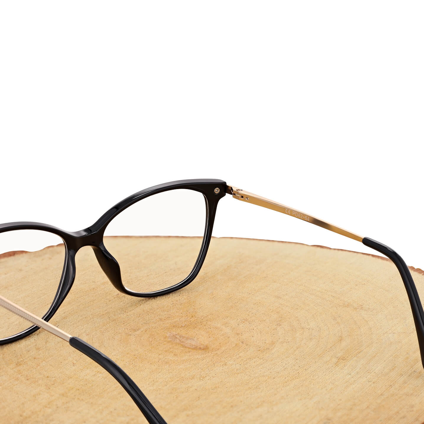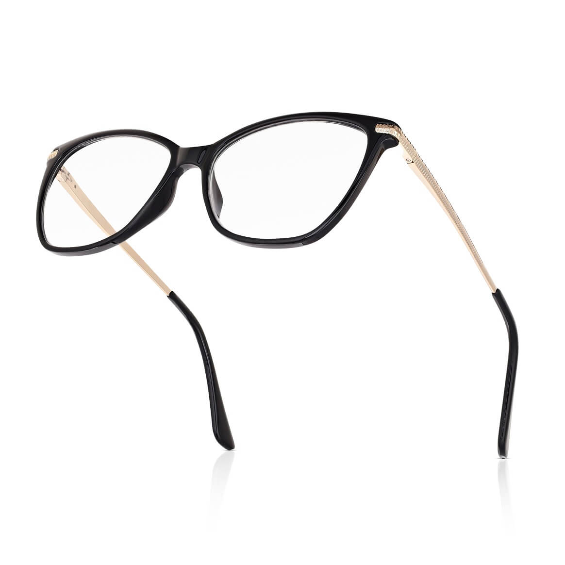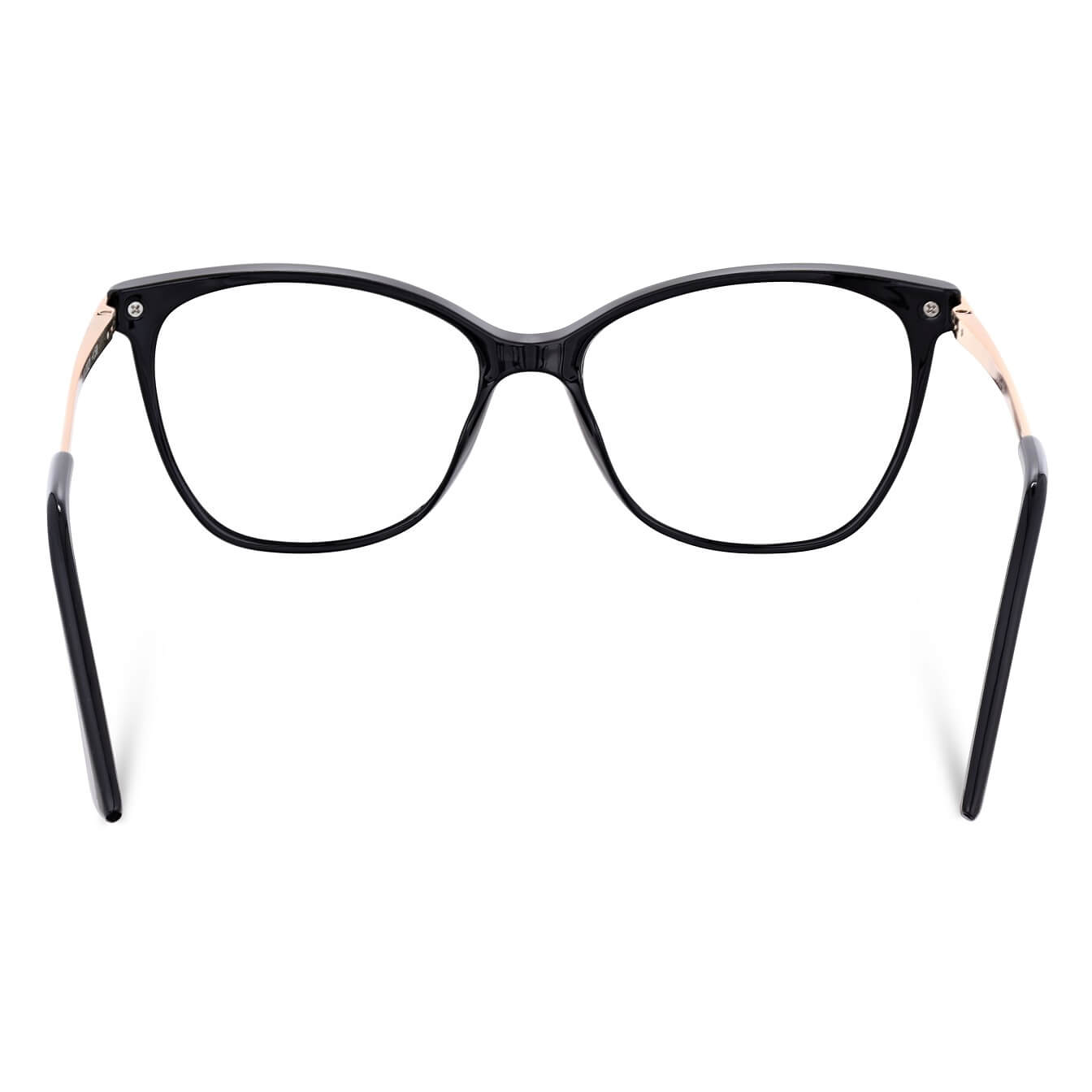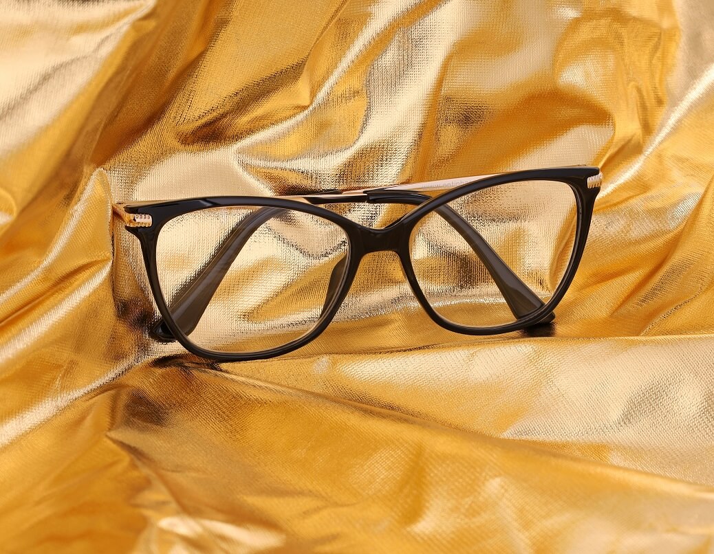 ➤ Pełne oprawki dla kobiet typu Kocie Oczy w kolorze czarno-złotym z teleskopowymi zausznikami