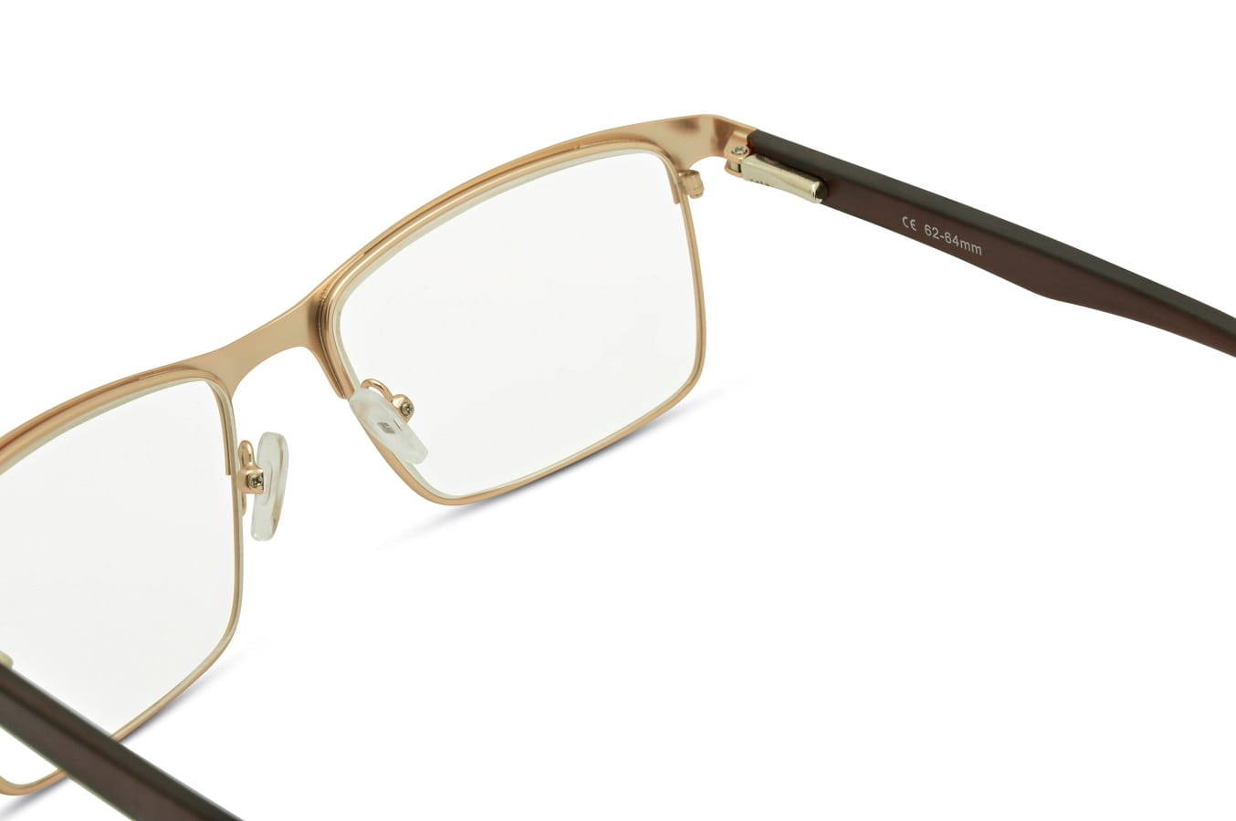 ➤ Pełne metalowe oprawki prostokątne w kolorze złoto-brązowym z teleskopami w zausznikach