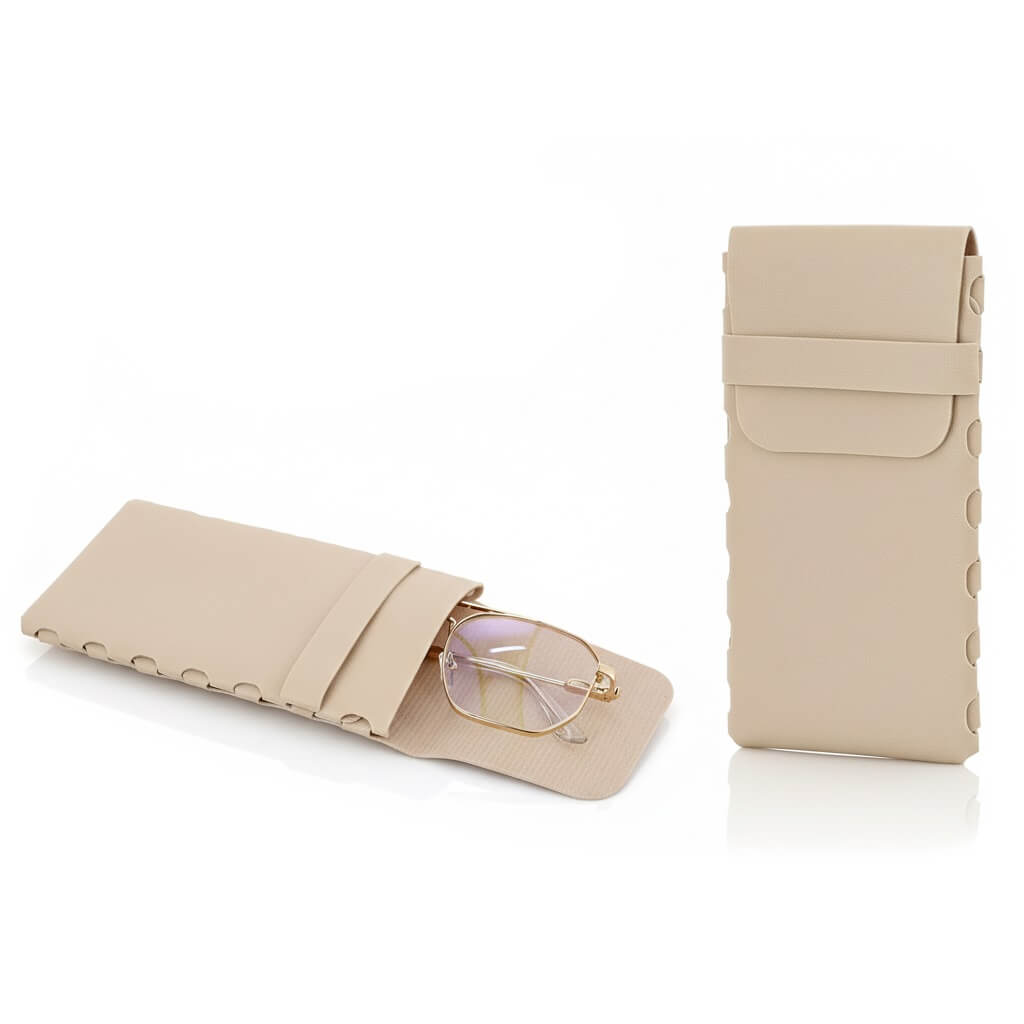 Pokrowiec na okulary zamykany na klapkę z paskiem – kolor kremowy
