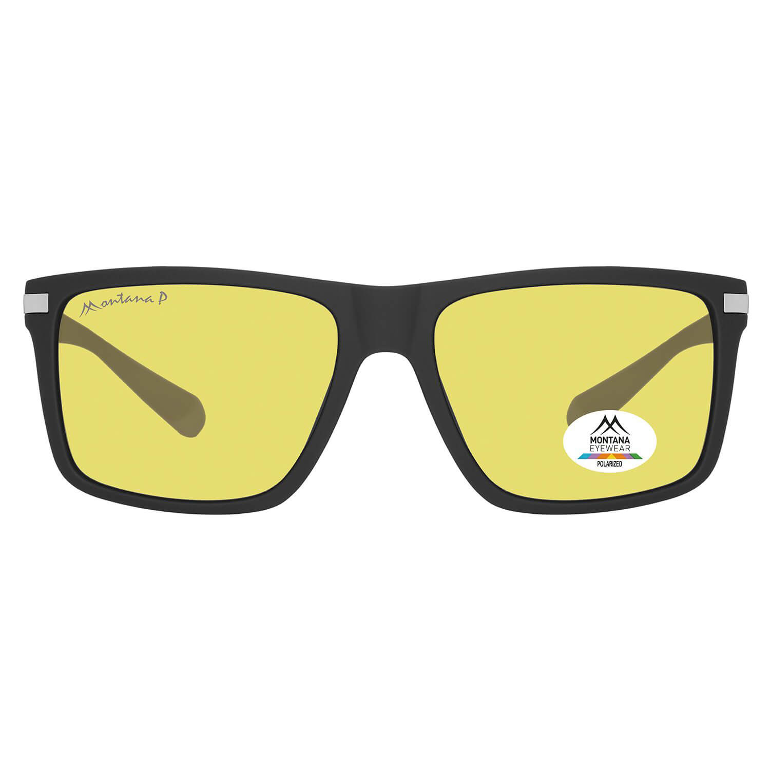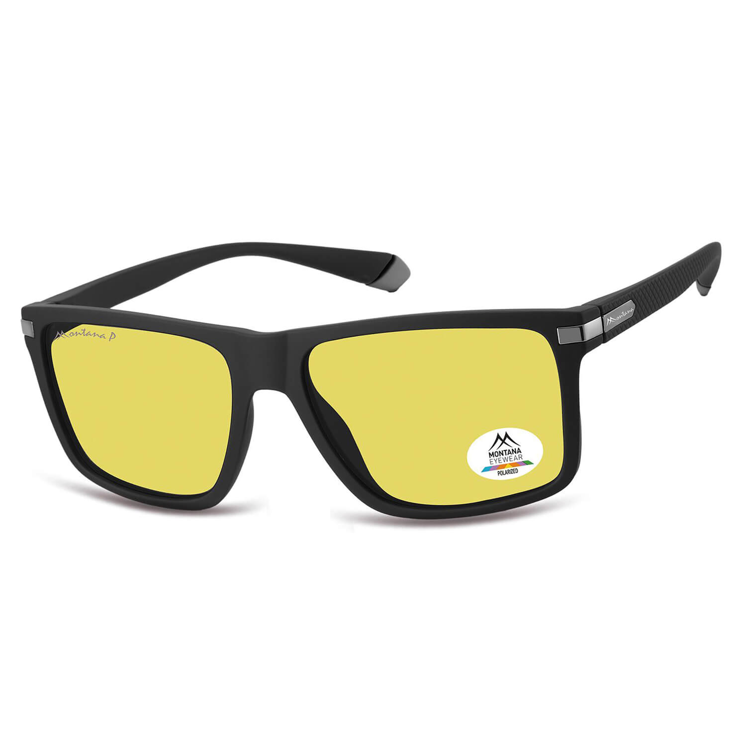 Rozjaśniające żółte okulary do jazdy nocą dla kierowców polaryzacyjne w czarnej prostokątnej oprawce marki Montana MP197E