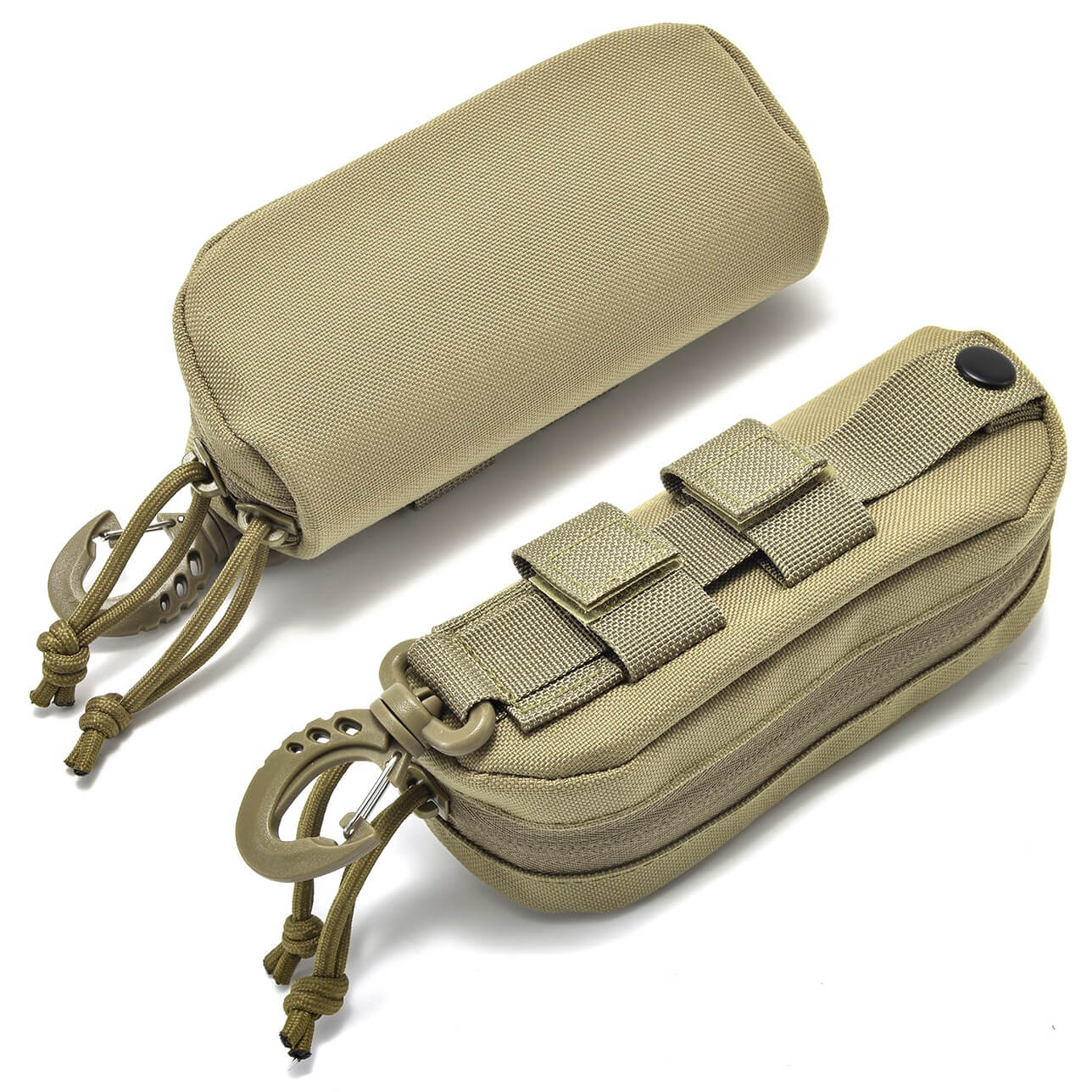 Taktyczne solidne KHAKI Etui na Okulary z Karabińczykiem i systemem Molle