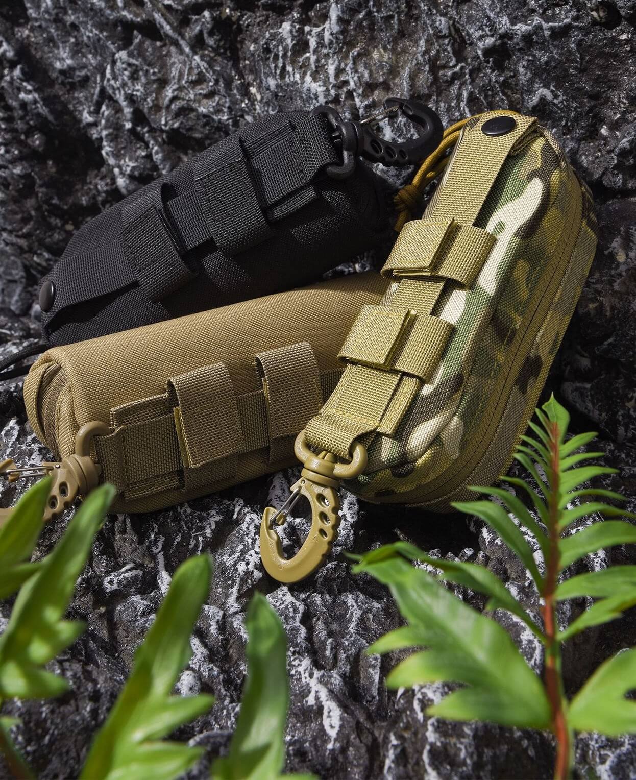 - System MOLLE: Pionowe pasy zapinane na mocny zatrzask pozwalają na pewne przypięcie etui do plecaków taktycznych, kamizelek modułowych czy pasów transportowych.