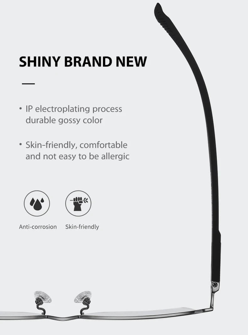 Odporność na korozję: Tytan nie rdzewieje, co sprawia, że okulary te są bardziej odporne na działanie wilgoci i potu.