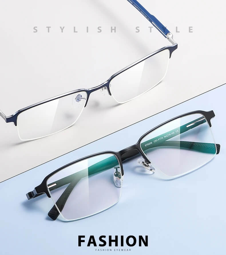Superlekkie Tytanowe okulary półramkowe zerówki z filtrem Blue Light marki Stylion