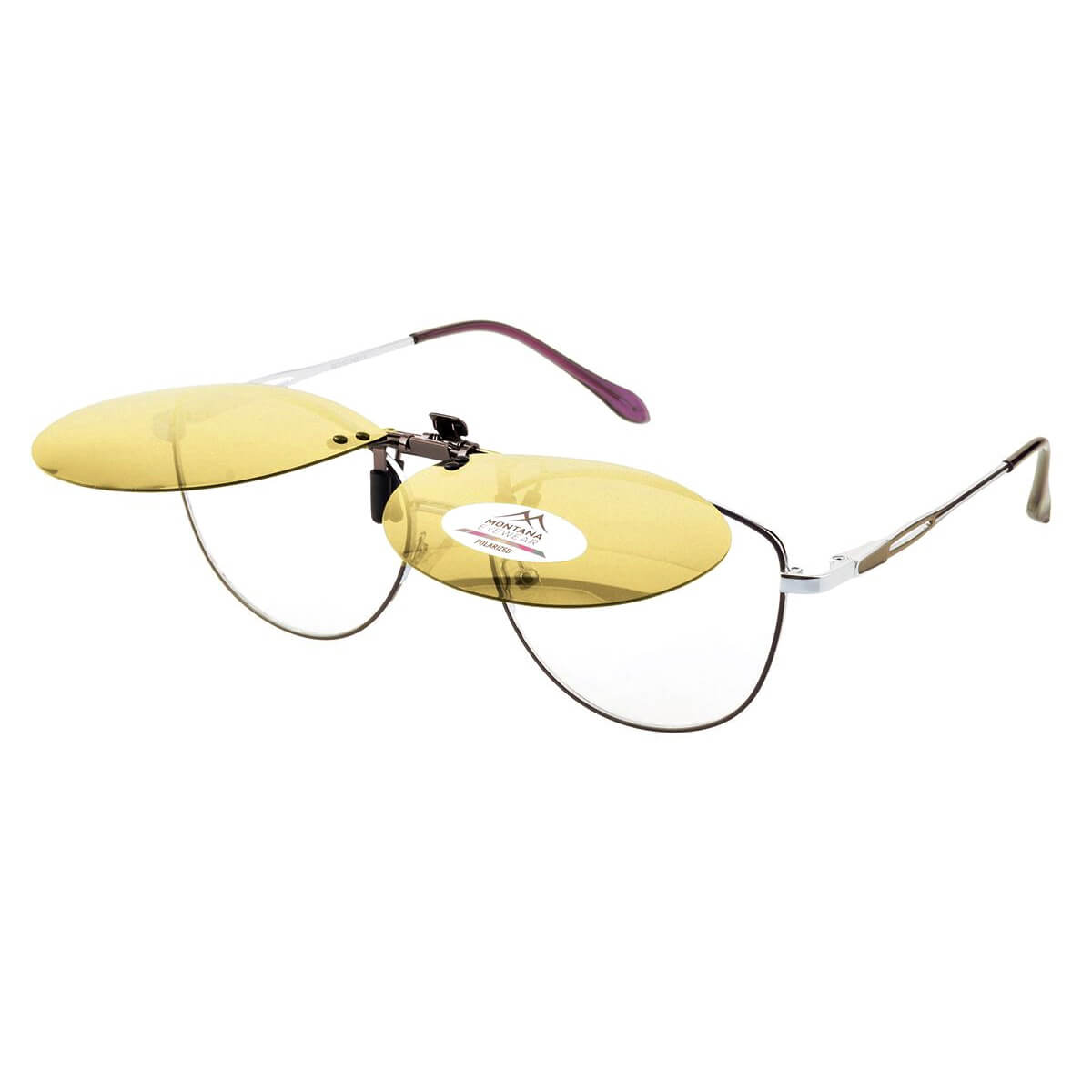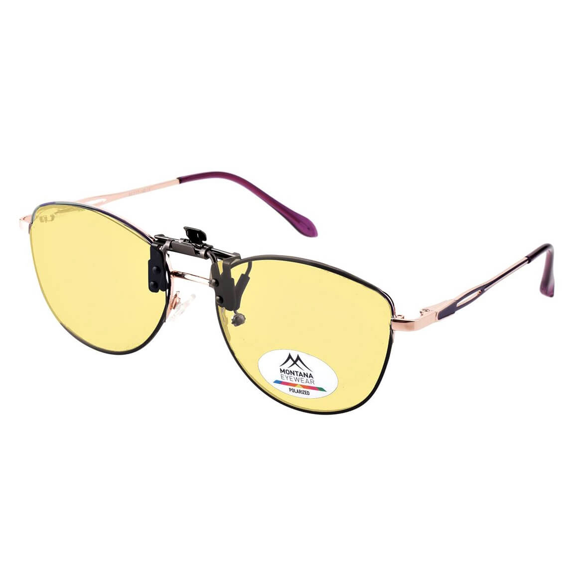 Uniwersalne nakładki rozjaśniające z polaryzacją montowane na klips w kolorze żółtym - do montażu na okulary korekcyjne