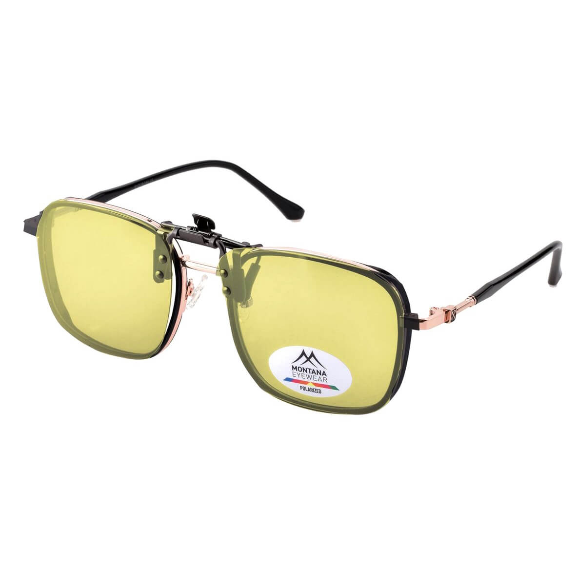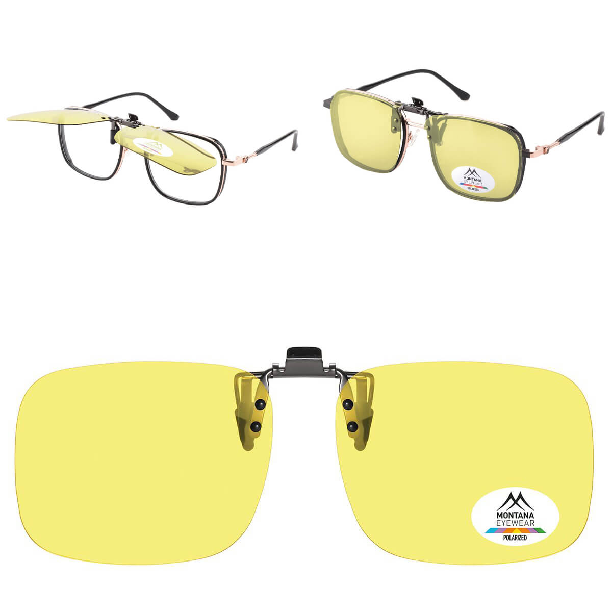 Uniwersalne nakładki rozjaśniające z polaryzacją montowane na klips w kolorze żółtym - do montażu na okulary korekcyjne